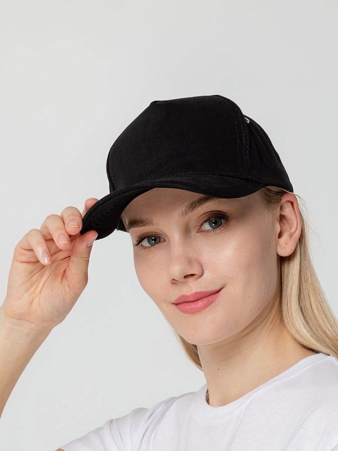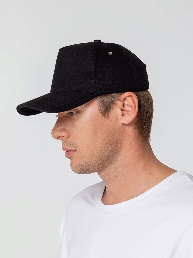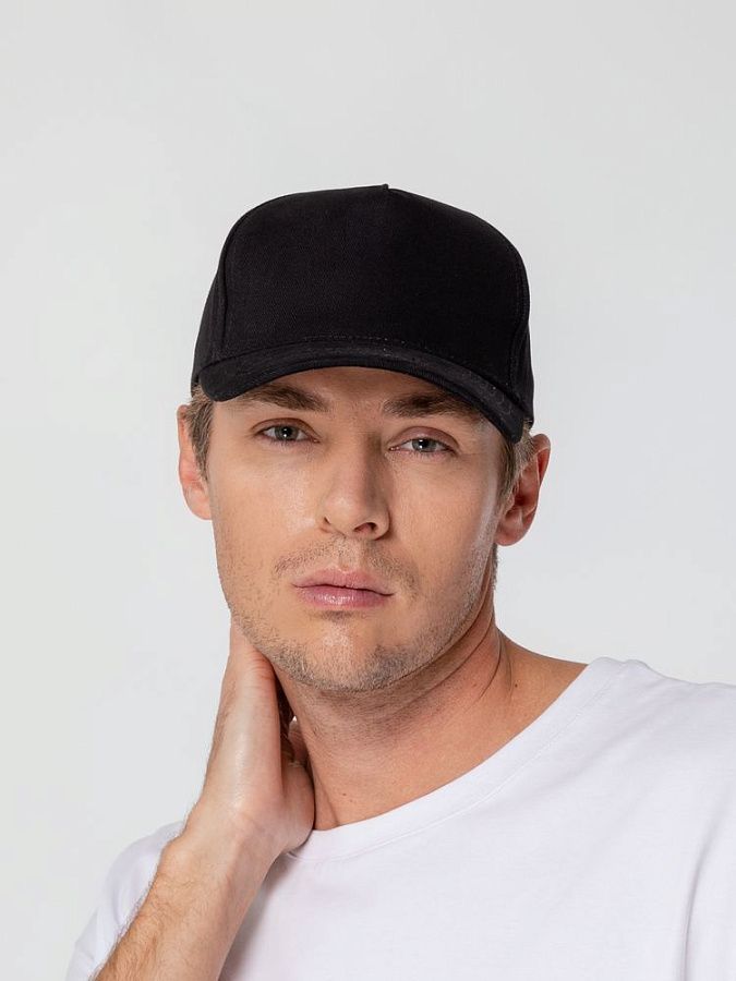 Минималистичная бейсболка с закругленным козырьком и большим местом для нанесения логотипа.