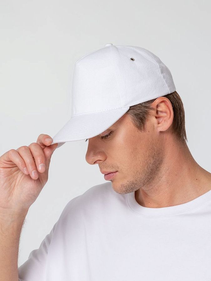 Минималистичная бейсболка с закругленным козырьком и большим местом для нанесения логотипа.