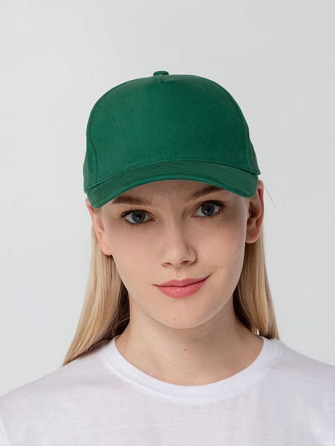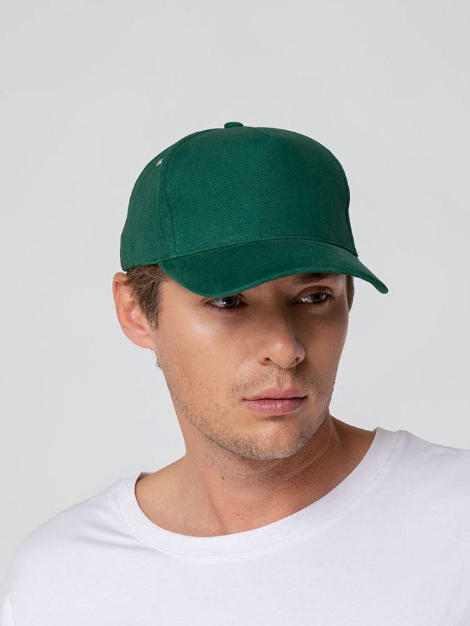 Минималистичная бейсболка с закругленным козырьком и большим местом для нанесения логотипа.