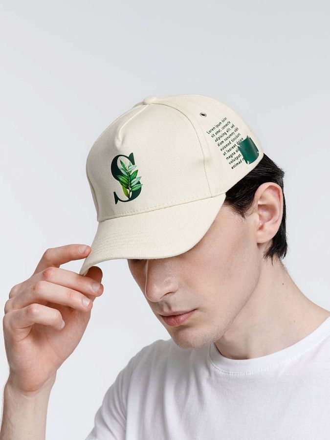 Минималистичная бейсболка с закругленным козырьком и большим местом для нанесения логотипа.