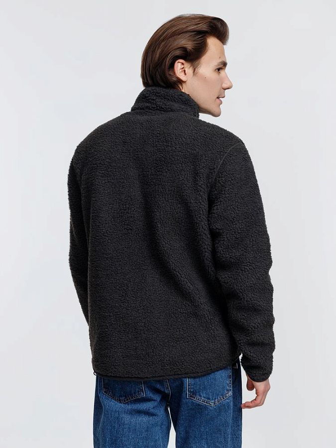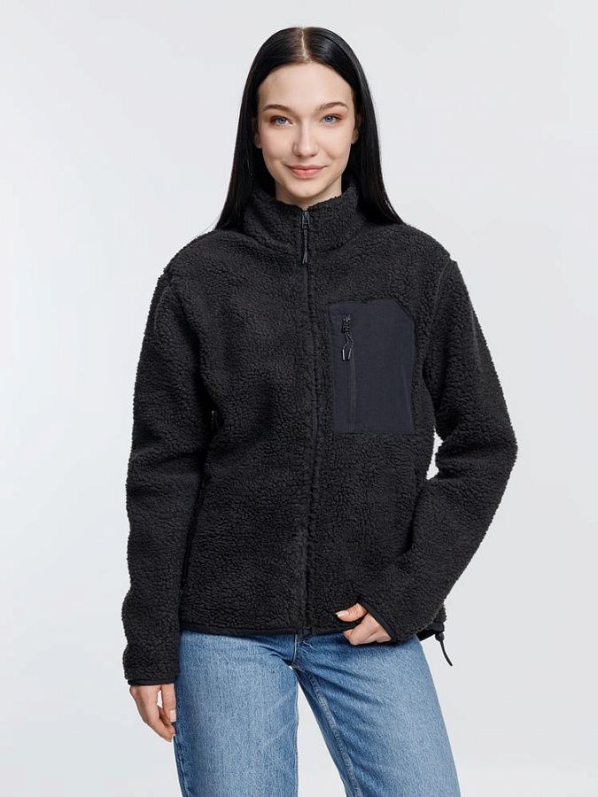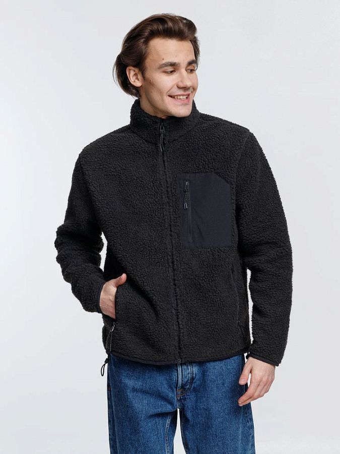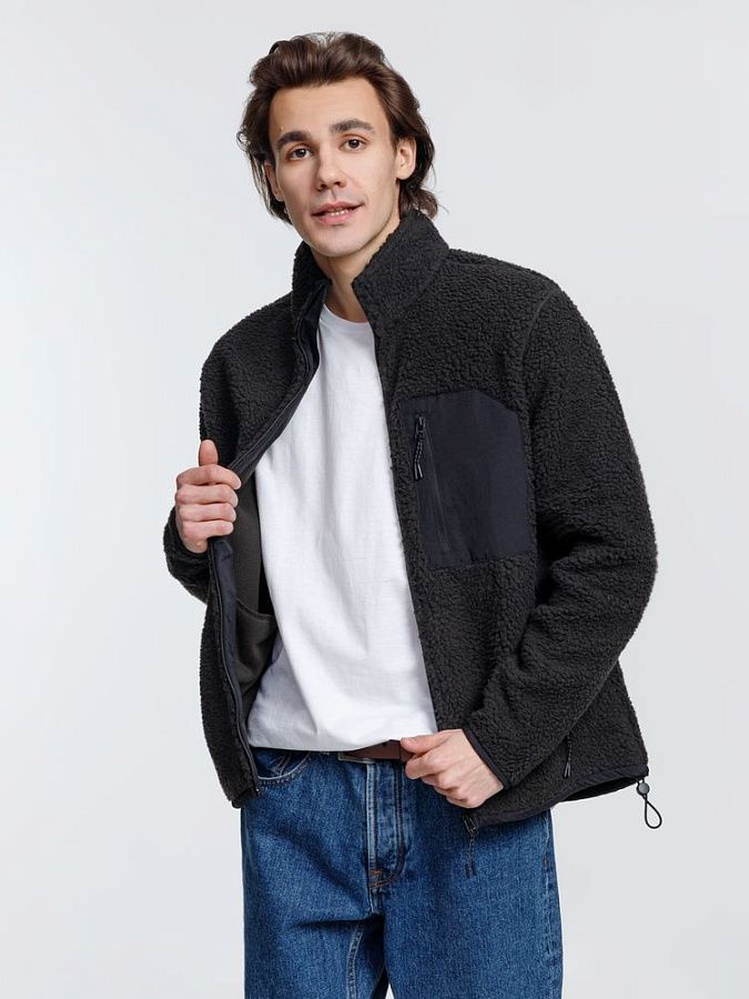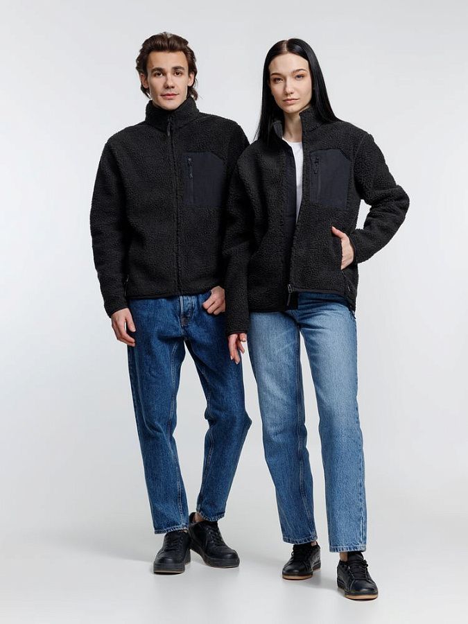 Куртка унисекс из фактурной искусственной шерпы с гладкой отделкой из таслана.