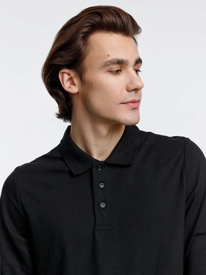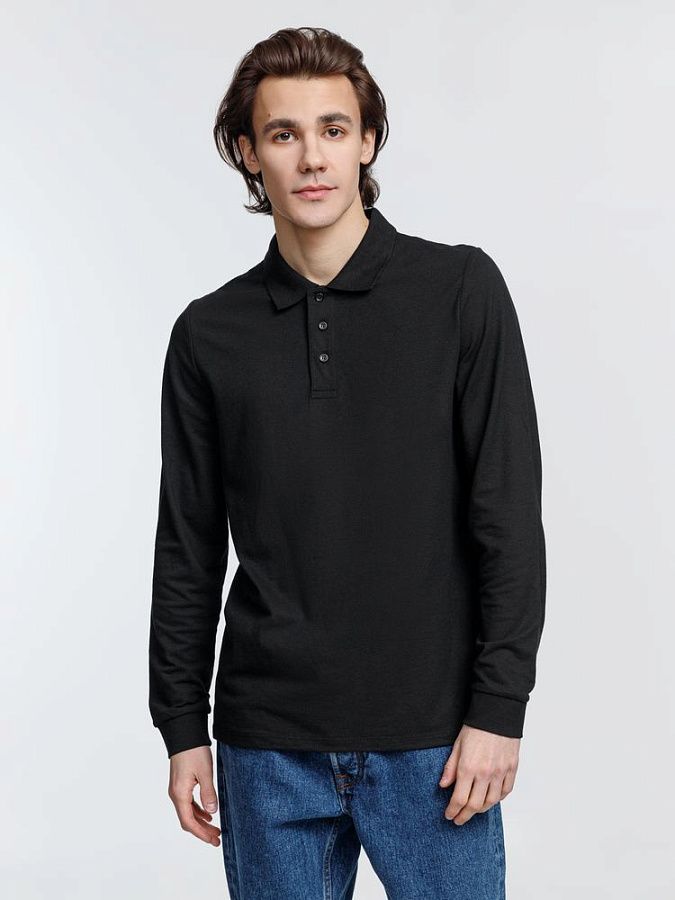 Рубашка поло "Point" мужская с длинным рукавом, цвет: черный, артикул 3310699M