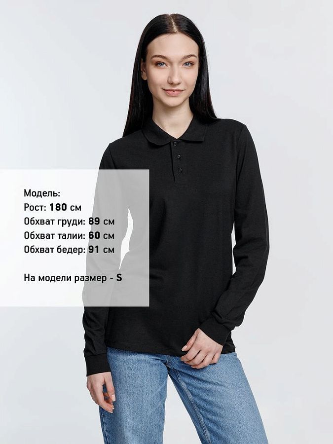 Рубашка поло "Point" мужская с длинным рукавом, цвет: черный под нанесение