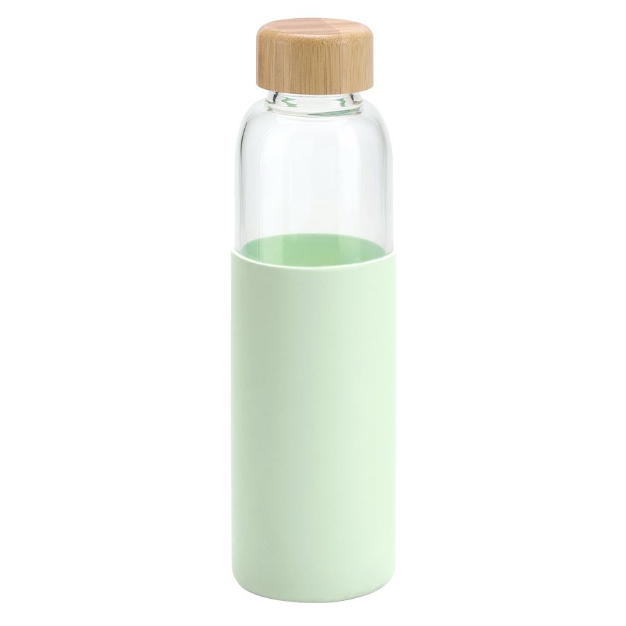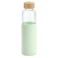 Бутылка со стеклянной колбой и крышкой из бамбука — изящное решение для тех, кто предпочитает природные материалы. Яркий силиконовый чехол защищает колбу от повреждений.
