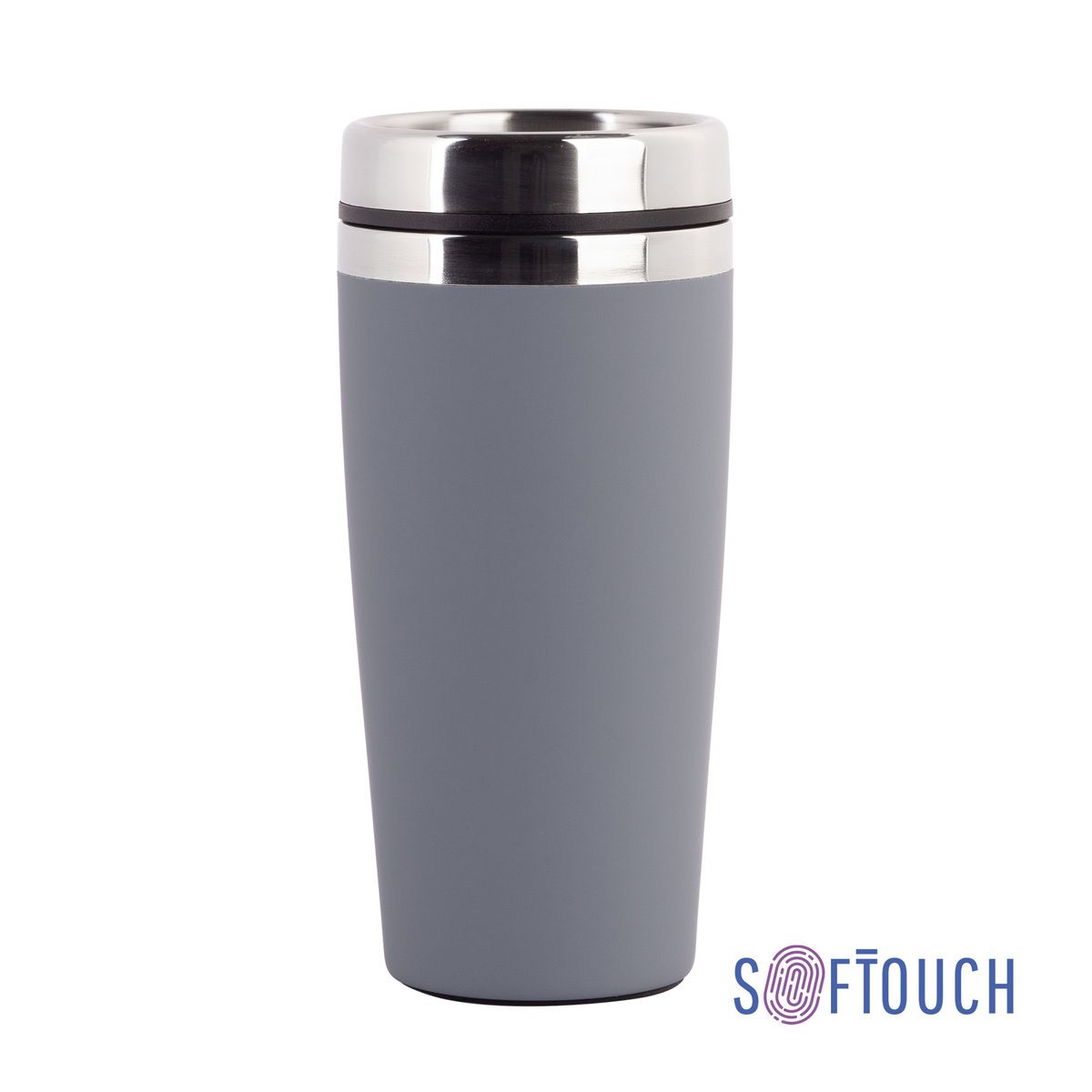 Внешняя стенка термостакана изготовлена из нержавеющей стали с уникальным прорезиненным напылением soft-touch, а внутренняя стенка выполнена из  высококачественной пищевой, нержавеющей стали. Корпус изделия персонализируется по окружности встык. У термостакана отвинчивающаяся крышка.
