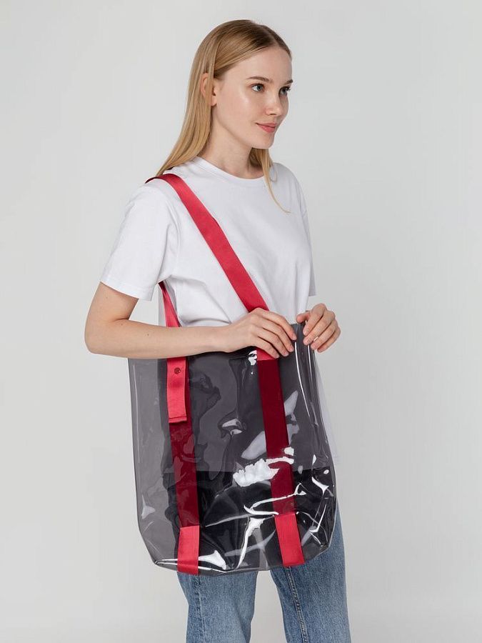Прозрачные сумки никогда не выйдут из моды. А цветные ручки легко впишутся в брендбук и точно передадут настроение, которое хотелось бы транслировать.
