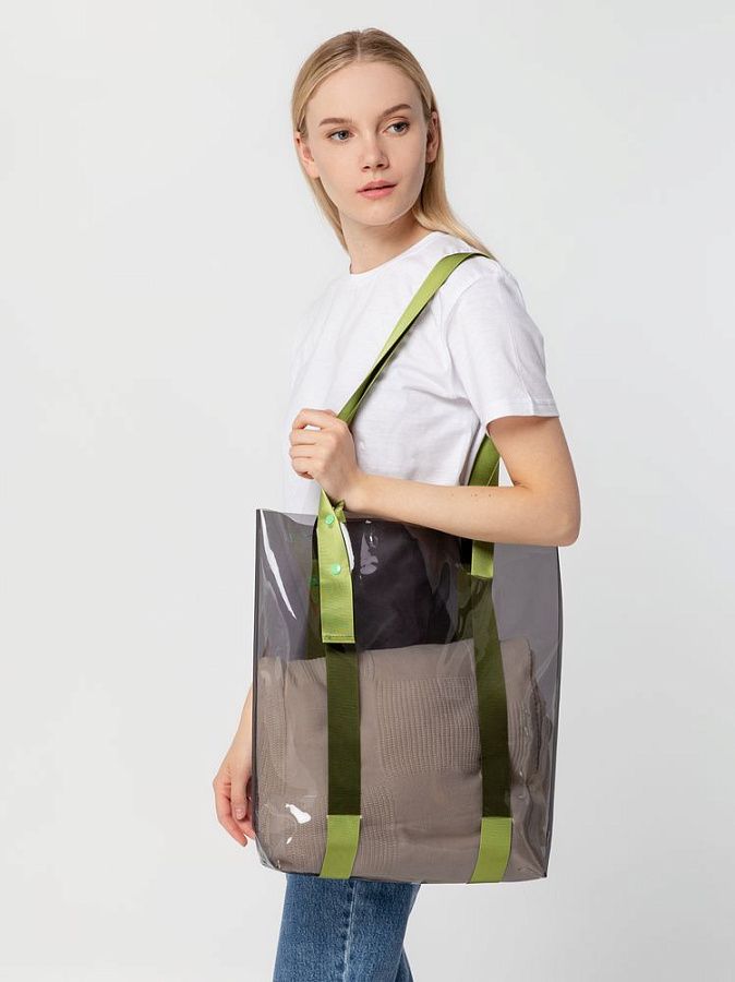 Прозрачные сумки никогда не выйдут из моды. А цветные ручки легко впишутся в брендбук и точно передадут настроение, которое хотелось бы транслировать.