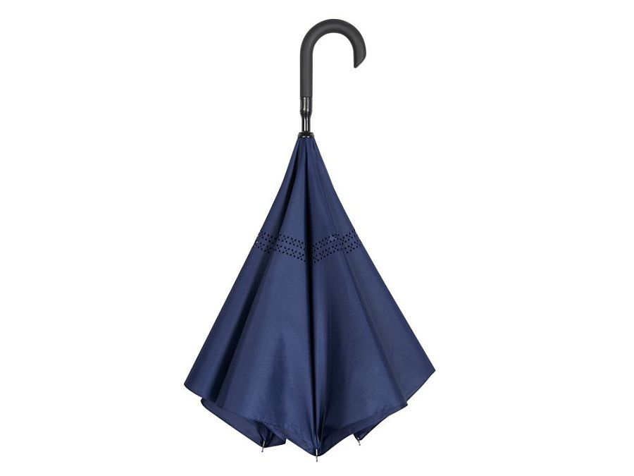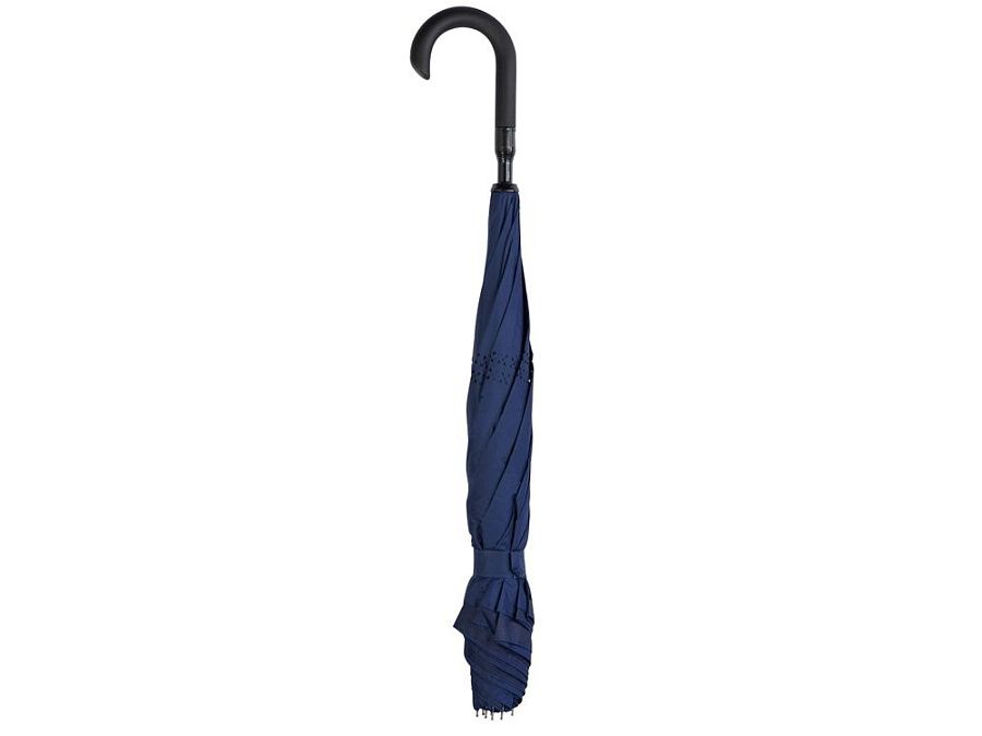 Зонт с обратным сложением складывается "внутрь". Очень удобен в использовании, например, во время посадки в машину при складывании вода остается внутри купола. Для просушки зонт можно поставить вертикально на пол в сложенном виде, что позволяет воде стекать без раскрытия зонта. Двойной купол из 190Т эпонжа. Ручка с мягким покрытием soft-touch для большего комфорта.