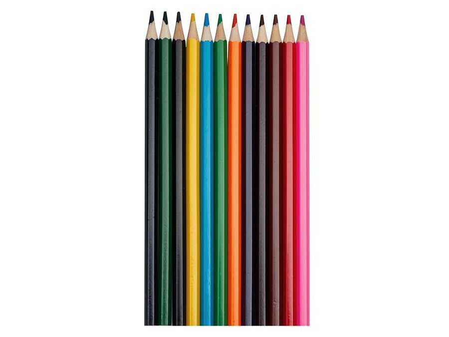 Набор из 12 шестигранных цветных карандашей твердостью ТМ. Нанесение можно сделать на всей поверхности упаковки