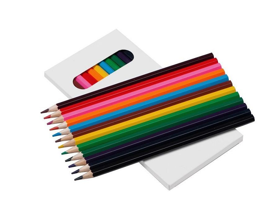 Набор из 12 шестигранных цветных карандашей твердостью ТМ. Нанесение можно сделать на всей поверхности упаковки