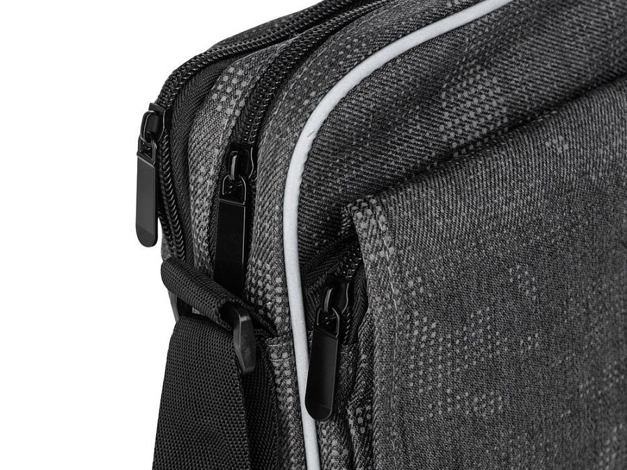 Материал сумки имеет светоотражающее камуфляжное нанесение. Спереди по краю сумки расположена светоотражающая полоса. Все это обеспечивает дополнительную безопасность в темное время суток.