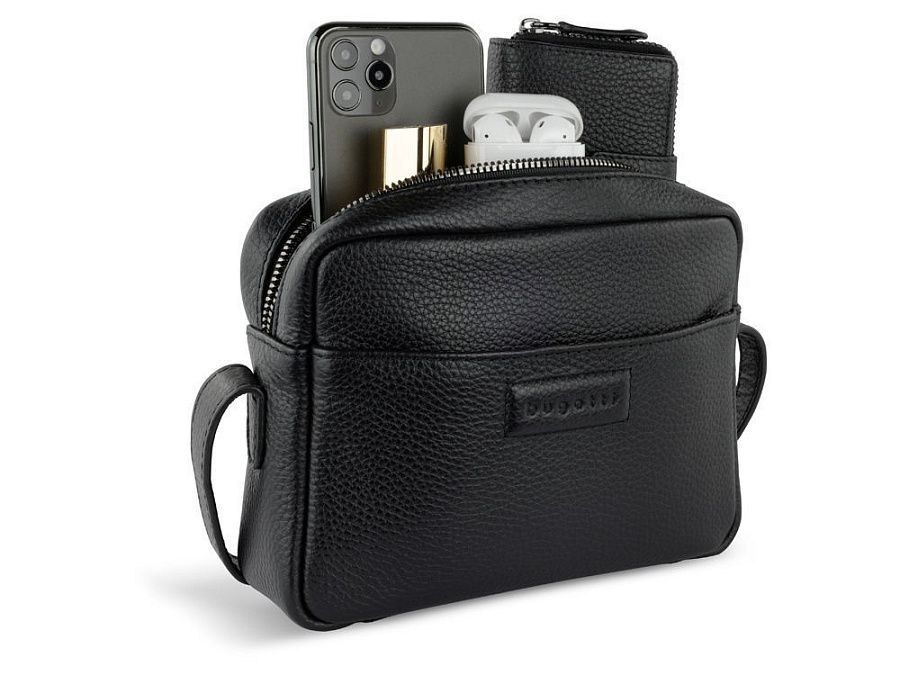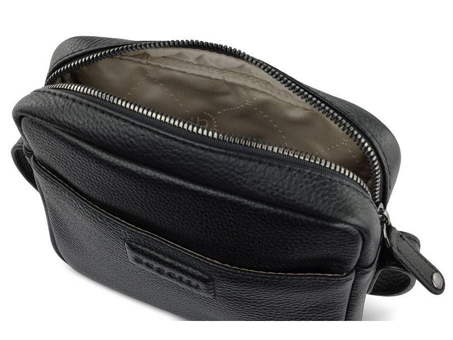Функциональная организация: основное отделение на молнии с открытым карманом, передний открытый карман, задний карман на молнии, регулируемый плечевой ремень (до 120 см).