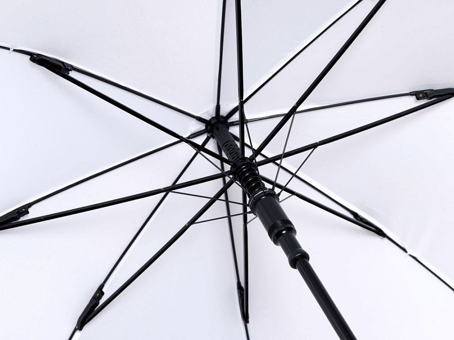 Купол зонта-трости выполнен из переработанного пластика. На ручке зонта расположена кнопка автоматического открытия. Гибкие спицы из стекловолокна делают зонт стойким к порывам ветра. Удобная ручка софт тач. Фиксирующая купол застежка на липучке шириной 3 см - дополнительная опция для нанесения вашего логотипа.