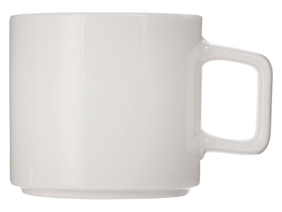 Белая кружка из костяного фарфора с удобной квадратной ручкой — широкой, комфортной для хвата и необычной формы. Форма дна позволяет ставить кружки друг на друга для экономии места: зацепленные друг за друга, выступом донышка, они не соскользнут друг с друга, выстроенные в ровную башню.