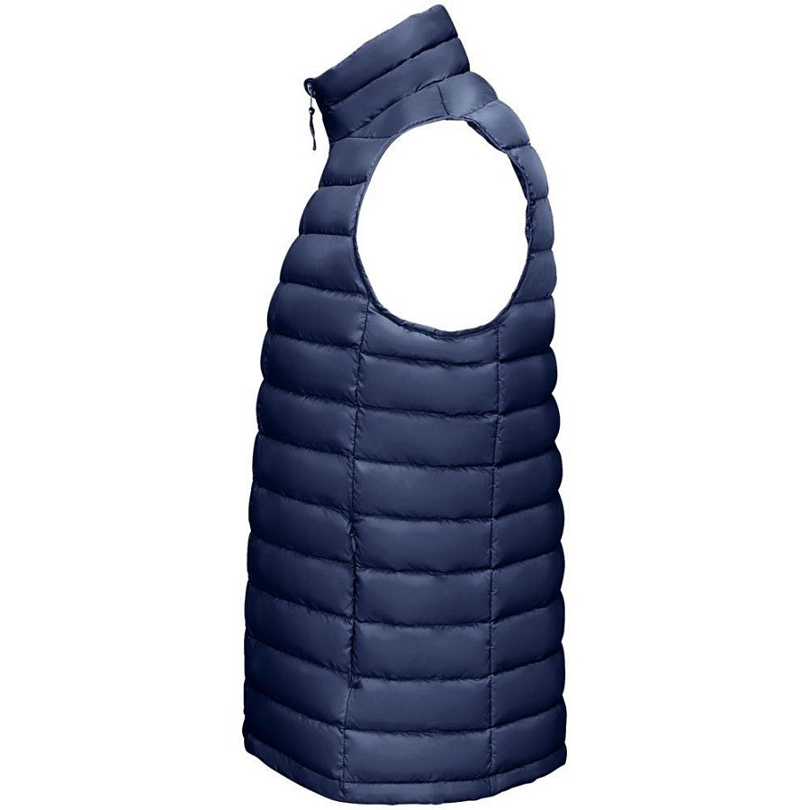 Мужской стеганый жилет облегающего кроя на молнии с воротником-стойкой.