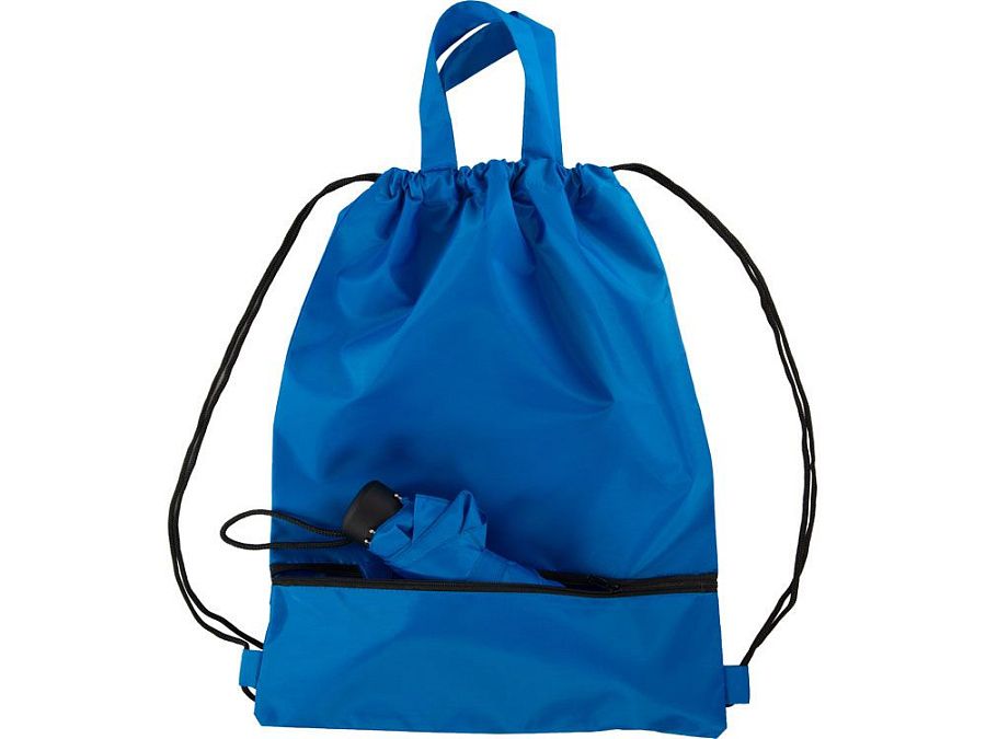 Механический зонт с прорезиненной ручкой идет в комплекте с сумочкой для покупок. На дне сумочки предусмотрен карман на молнии, в котором вы можете хранить зонт дома или прятать в него мокрый зонт, когда вы попали под дождь. Находясь в кармане сумочки, мокрый зонт не доставит неудобств. Сумочка имеет 2 варианта использования: шопер с двумя 2 ручками и рюкзак-мешок со шнурками.