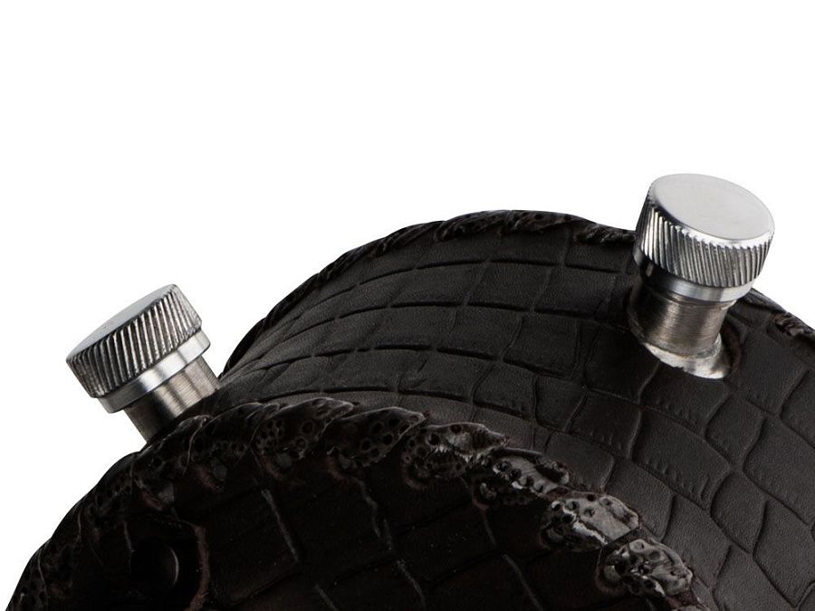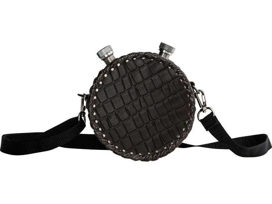 Двойная фляга из нержавеющей стали в оплетке из натуральной кожи.