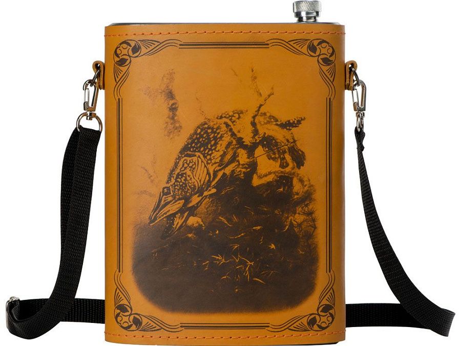 Фляга 2л в оплетке из натуральной кожи с нанесением рисунка методом художественного выжигания.
