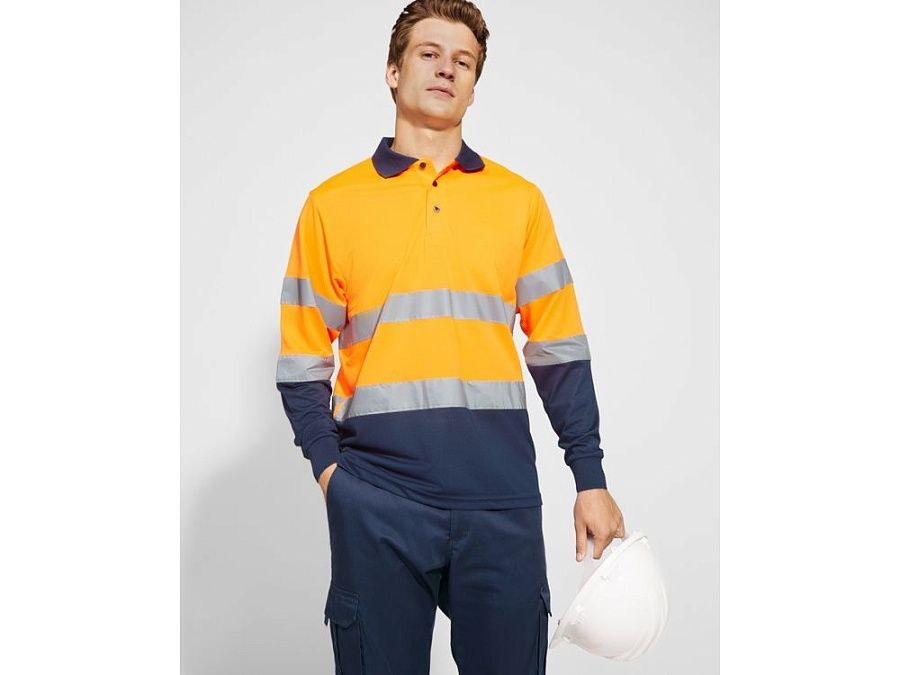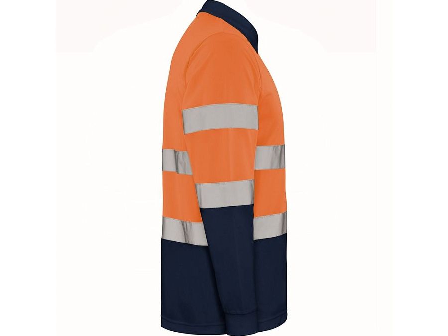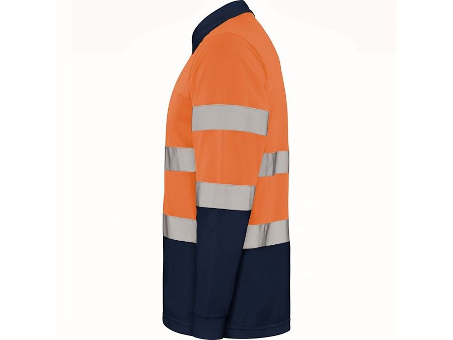 Техническая рубашка поло с длинными рукавами. Планка на 3 пуговицы. Воротник и манжеты в рубчик 1 x 1. Две горизонтальные светоотражающие полосы на туловище и рукавах. Ткань предотвращает зацепление.