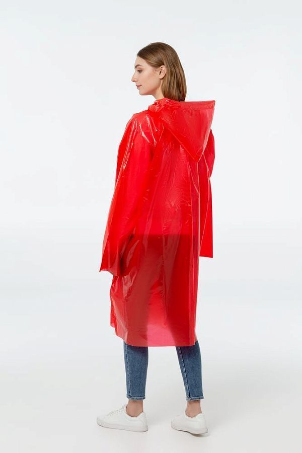 Дождевик-плащ с капюшоном и длинными рукавами из полиэтилена высокого давления (ПВД).