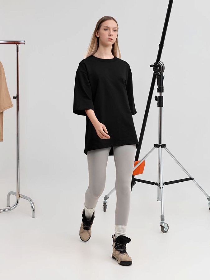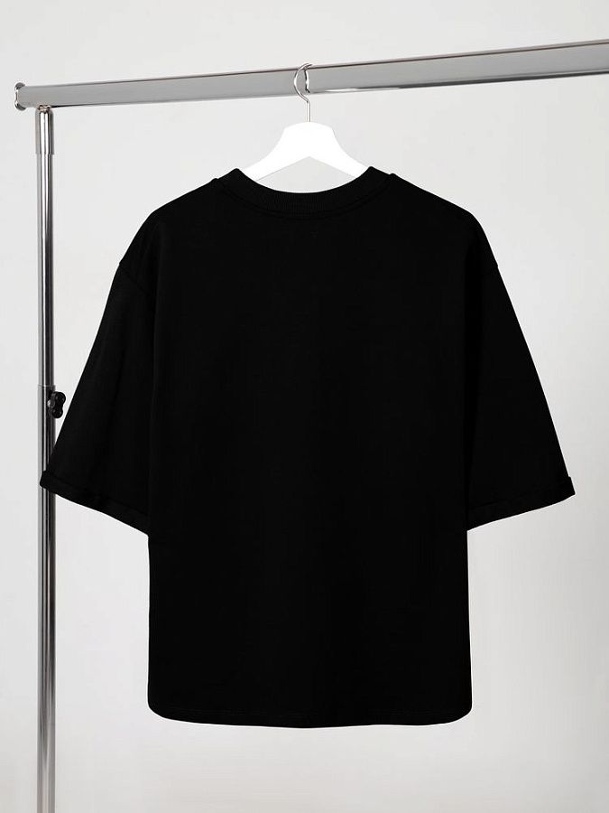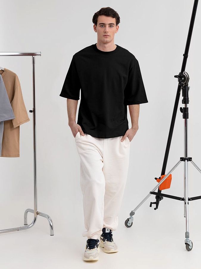 Футболка унисекс свободного кроя со спущенным плечом и смещенными плечевыми швами.