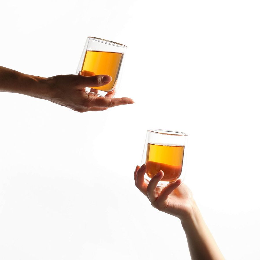 Стакан с двойными стенками удобно ложится в руку и не обжигает, даже если в нем свежезаваренный кофе. Весь секрет в двойных стенках и прослойке воздуха между ними.