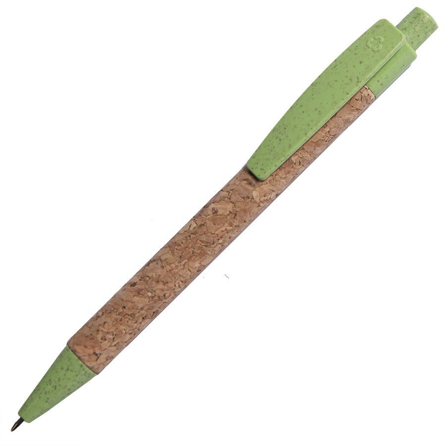 • Pantone деталей, близкий к 362 C• Размер 140*11 мм• Корпус из пробки• Детали из ABS пластика с добавлением пшеничного волокна• Значок переработки на оголовке ручки• Нажимной механизм подачи стержня• Пулевидный пишущий узел 1.0 мм• Длина линии письма 1000 м.• Цвет чернил синий• Сменный стержень