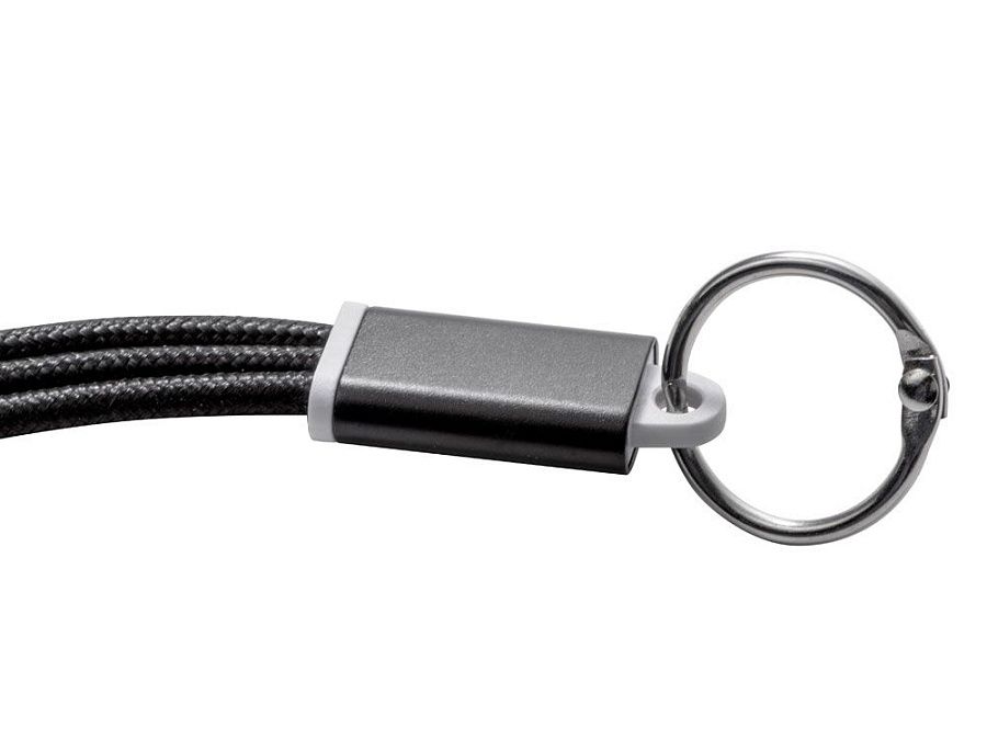 Кабель для зарядки «Tres» 3-в-1 с брелоком, коннекторами 1 type с, 1 USB type A и двойным совместимым коннектором «2-в-1» для устройств с ОС Apple® iOS и Android. В комплект входит брелок. Для зарядки устройств Apple подключайте кабель стороной без контактов; для зарядки устройств с ОС Android подключайте кабель стороной с контактами. Алюминий.