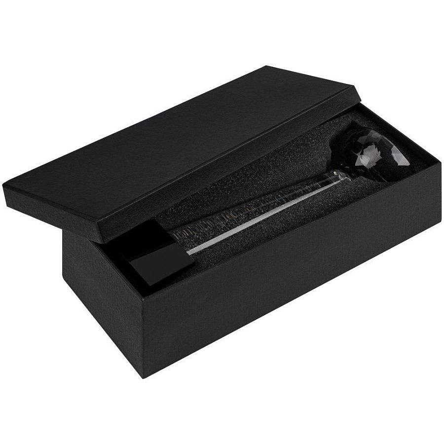 Массивное черное основание и легкое прозрачное навершие создают сбалансированную и устойчивую композицию. При попадании прямого света рельефный рисунок на чаше запускает вокруг легкие блики.