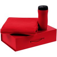 термостакан - пластик, крышка, внутренняя колба; нержавеющая сталь, корпус; покрытие софт-тач; плед - флис, плотность 180 г/м²; коробка - переплетный картон; наполнитель - бумага