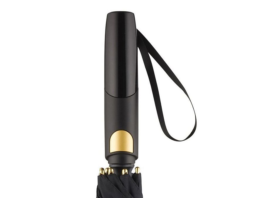 Зонт-трость с большим куполом укроет от дождя двух человек. Каркас изготовлен из особо прочного алюминия. Детали из алюминия окрашены в популярные цвета и стильно выглядят. Зонт плавно раскрывается нажатием кнопки на ручке. В ручку интегрирован эластичный шнур для большего удобства.