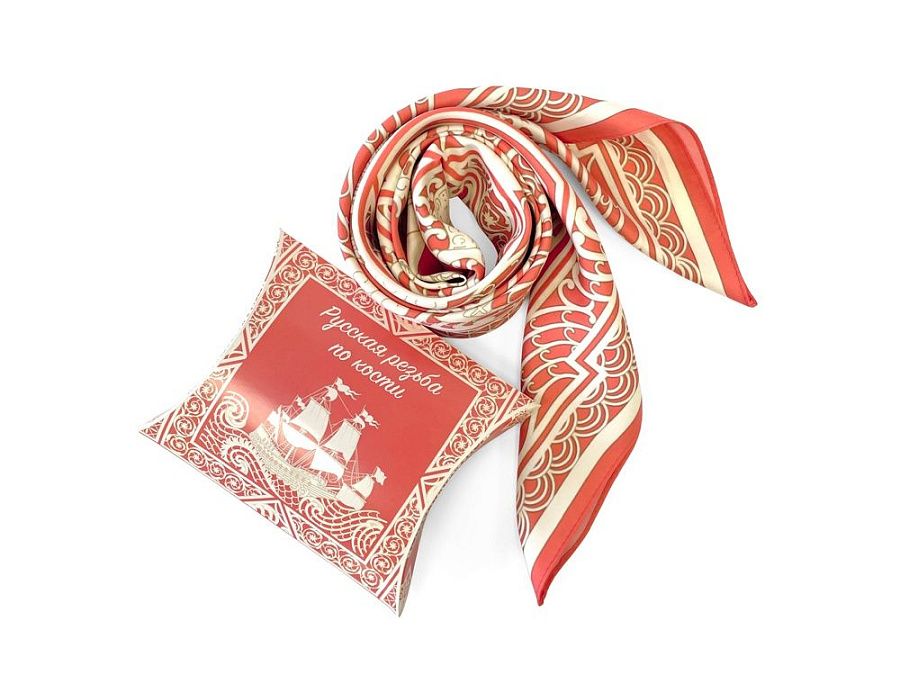 Платок «Русская резьба по кости» совмещает в себе традиции виртуозных мастеров и отвечает запросам нашего времени. В изысканный и модный аксессуар вплетена история, а сам по себе он является модным акцентом в образе современной девушки.