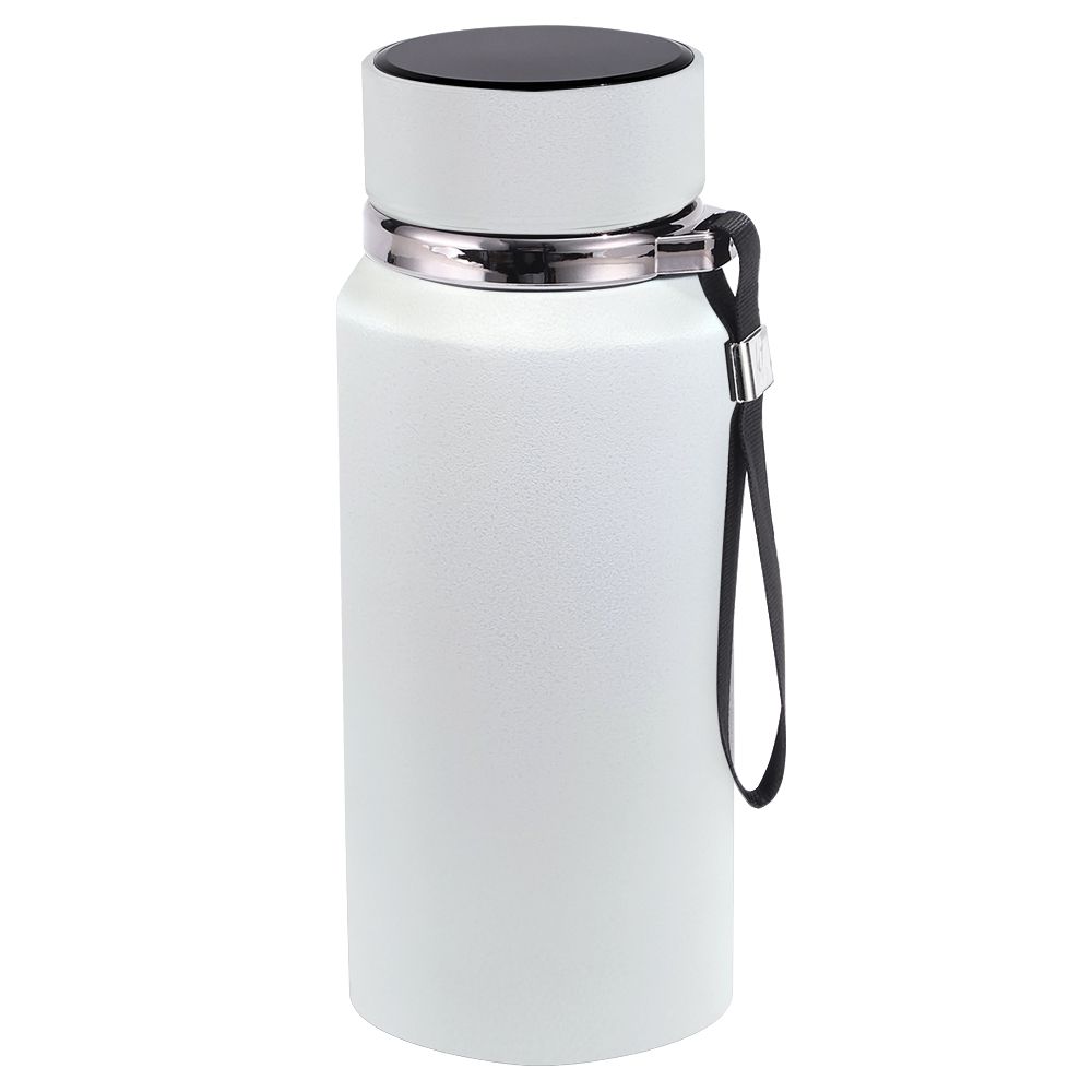Термос имеет полуматовую обработку с эффектом текстурированности, что выражается в изменении цвета от серо-белого до абсолютно белого в зависимости от освещения. Чем естественнее и ярче освещение, тем более белым выглядит термос, что придает ему особую элегантность и изящество!