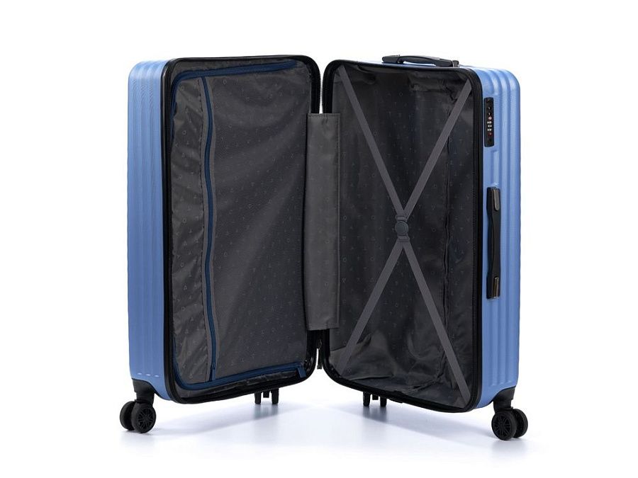 Чемодан полностью раскрывается на 2 вместительных отделения, с перегородкой на молнии и ремнями в форме X для надежной фиксации вещей на месте.