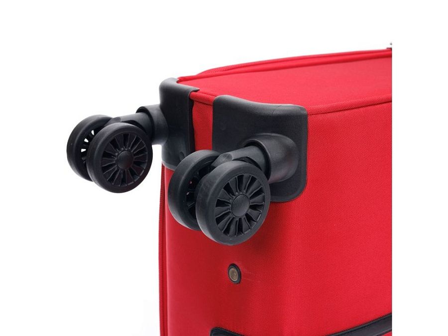 Легкая регулируемая телескопическая алюминиевая ручка и система из четырёх двойных колёс, вращающихся на 360 градусов, обеспечивает мягкий ход и свободное движение во всех направлениях.