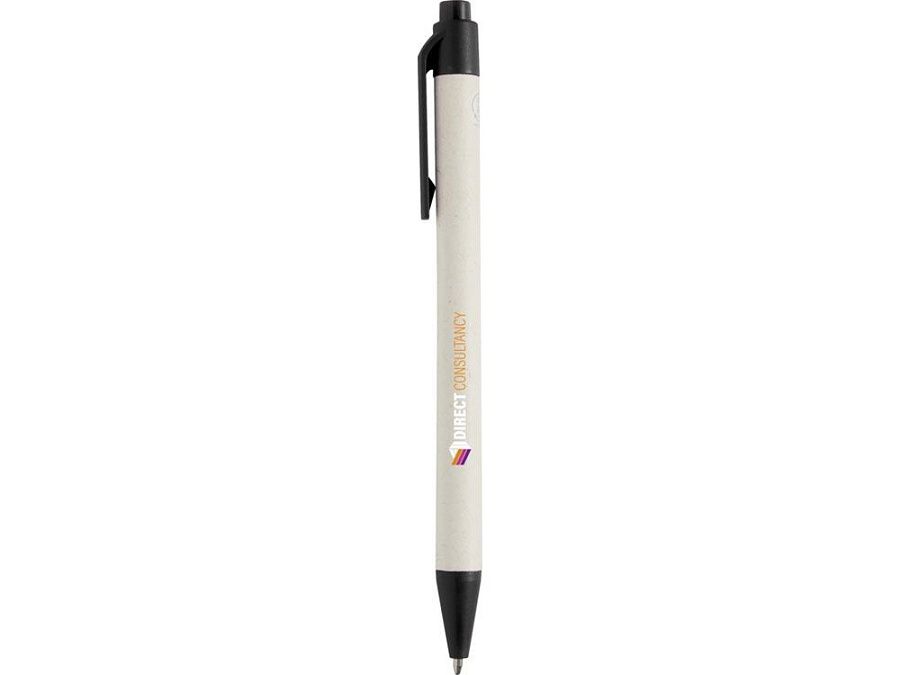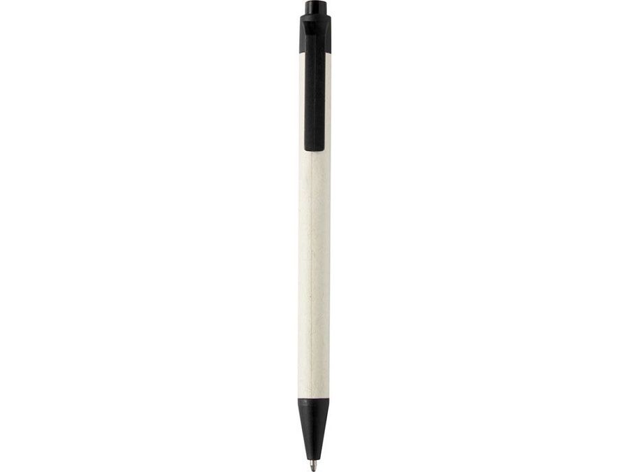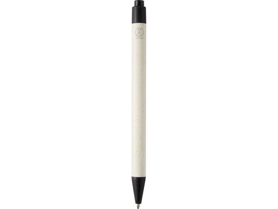 Шариковая ручка с кнопочным механизмом и корпусом из переработанных коробок из-под молока (до 70%). Кнопка, зажим и наконечник изготовлены из PLA-пластика. Картонные коробки из-под молока собираются, сортируются, перерабатываются и превращаются в бумагу, таким образом действительно превращая мусор во что-то полезное.