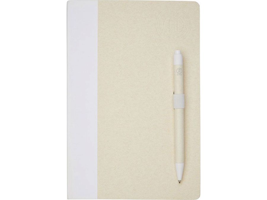 Блокнот A5 Dairy Dream с шариковой ручкой. Блокнот имеет 80 линованных листов (80 г/м²) из переработанных коробок из-под молока (до 70%), цветную спираль для бумаги и петлю для ручки. В петле находится шариковая ручка с кнопочным механизмом, цвет которой соответствует цвету блокнота. Корпус ручки также изготовлен из переработанных коробок из-под молока, а кнопка, зажим и наконечник изготовлены из цветного PLA-пластика. Внутри ручки имеется черный стержень. Картонные коробки из-под молока собираются, сортируются, перерабатываются и превращаются в бумагу, таким образом действительно превращая мусор во что-то полезное.