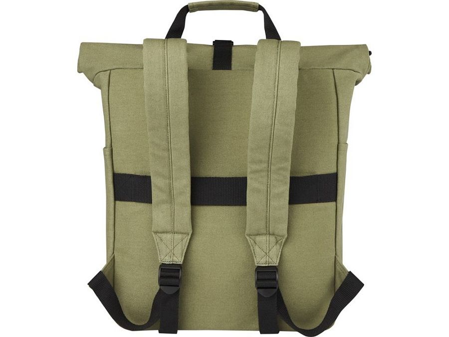 Изготовленный из высокопрочных экологичных материалов, брезента и подкладки из переработанного ПЭТ, соответствующих стандарту GRS, рюкзак Joey со сворачивающимся верхом имеет специальный чехол для планшета и отделение с подкладкой для ноутбука диагональю 15 дюймов. Рюкзак также имеет 2 боковых кармана для воды, один большой передний карман на молнии и сворачивающуюся верхнюю часть на молнии для максимальной вместимости и безопасности. Две усиленные вязанные ручки обеспечивают удобство и простоту ношения в качестве деловой сумки-тоут. Декоративная металлическая пластина может придать логотипу сияние благодаря утонченному матовому покрытию.