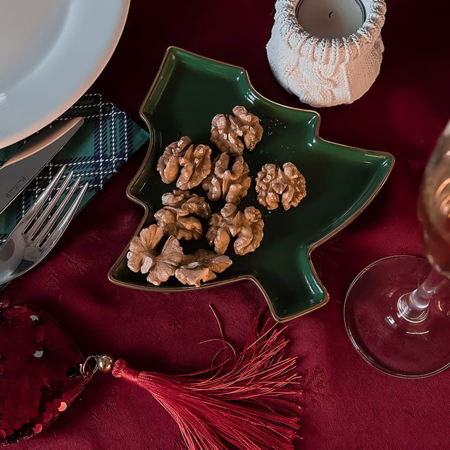 Неизменный атрибут новогоднего стола - тарелка для закусок в виде главного символа - новогодней елки!Золотой кант по краюНа тарелку можно красиво выложить разные виды сыра, мясных деликатесов или оливки.А можно просто сервировать ими стол индивидуально для каждого гостя.Индивидуальная коробка из крафтового картона