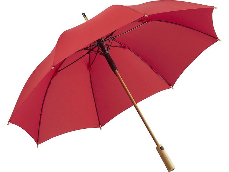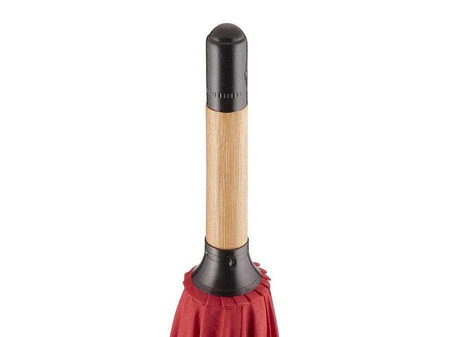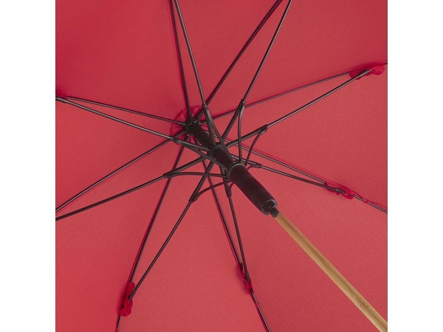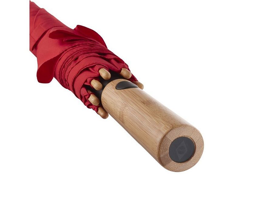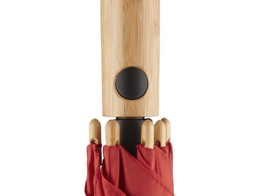 Зонт-трость изготовлен их экологичных материалов: купол из эпонжа из переработанного пластика с использованием технологии WaterSAVE, когда окрашивание материала происходит в процессе производства, за счет чего снижает потребление электроэнергии и воды. Каркас и ручка - из натурального бамбука. Зонт быстро и плавно открывается нажатием кнопки на ручке.