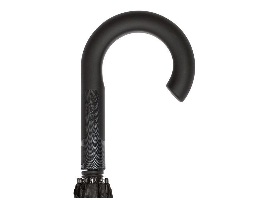 Стильный зонт-трость может укрыть от дождя 2х человек благодаря куполу большого диаметра. Купол изготовлен из эпонжа из переработанного пластика с использованием технологии WaterSAVE, когда окрашивание материала происходит в процессе производства, за счет чего снижает потребление электроэнергии и воды. Зонт плавно открывается при нажатии на кнопку на ручке.