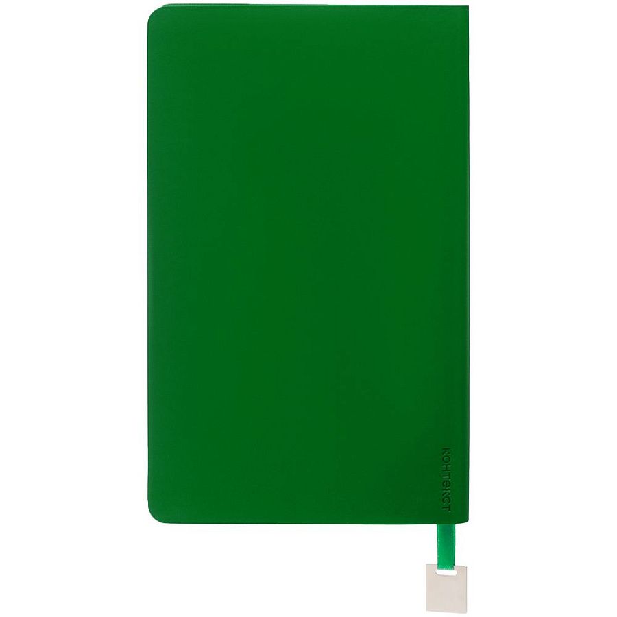 Ежедневник с гибкой обложкой, выполнен из материалов Soft Touch Ultra, зеленый FF, и Latte, зеленй (внутренняя часть обложки), дополнен ляссе в цвет обложки с металлическим шильдиком.