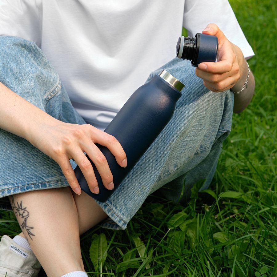 Термобутылку классической формы удобно брать с собой в офис, спортзал, на пробежку или в поход. Крышка в цвет корпуса, полностью литой корпус бутылки, вакуумная герметичная конструкция из двухслойной высоколегированной стали марки 304, порошковое покрытие корпуса и крышки.