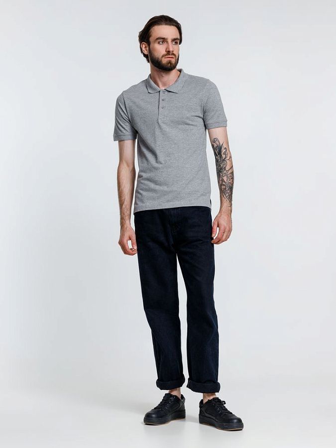 Мужская рубашка поло прямого силуэта с разрезами по бокам.