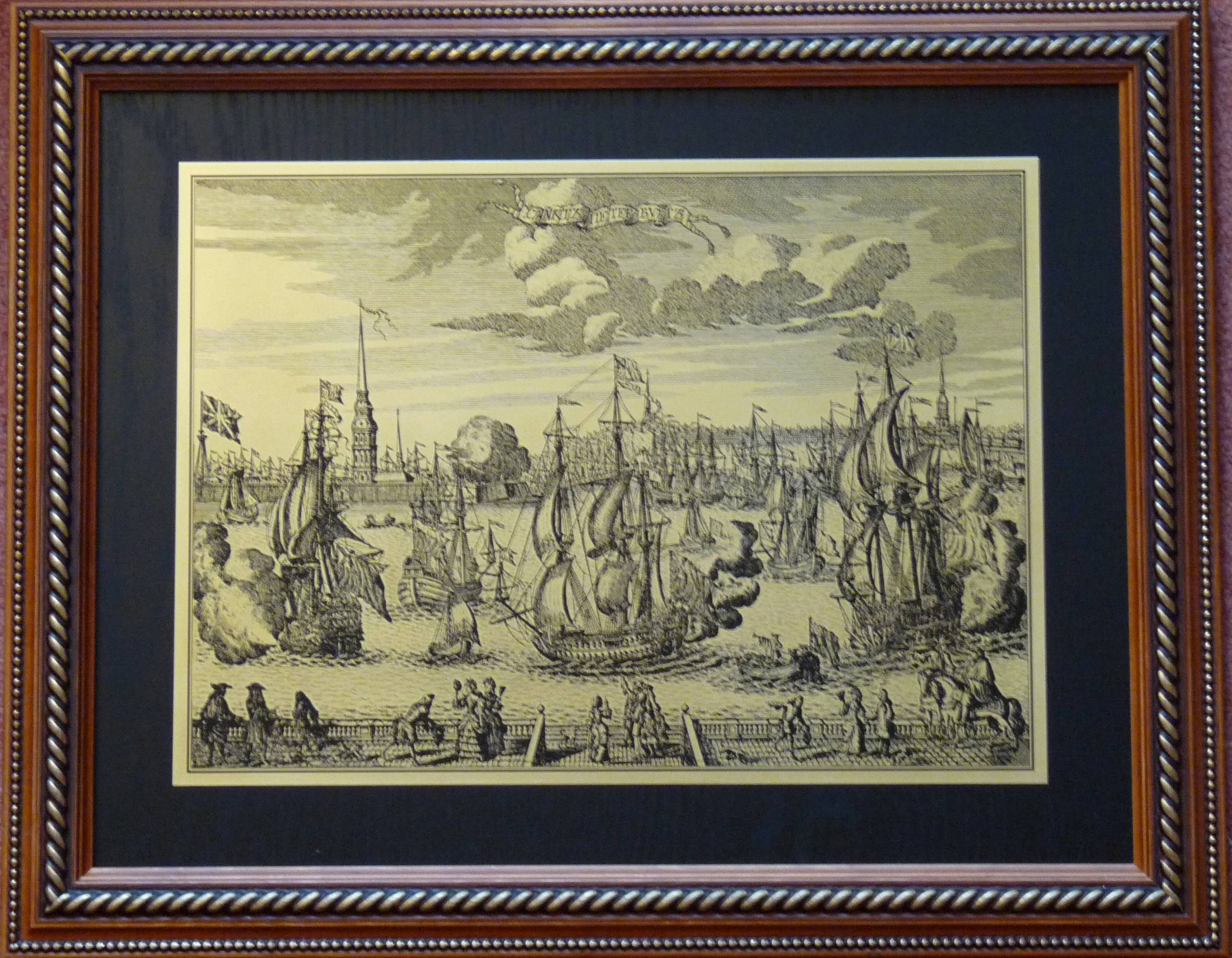 Гравюра "Вид Адмиралтейства и ИС в 1720 году" в vip раме