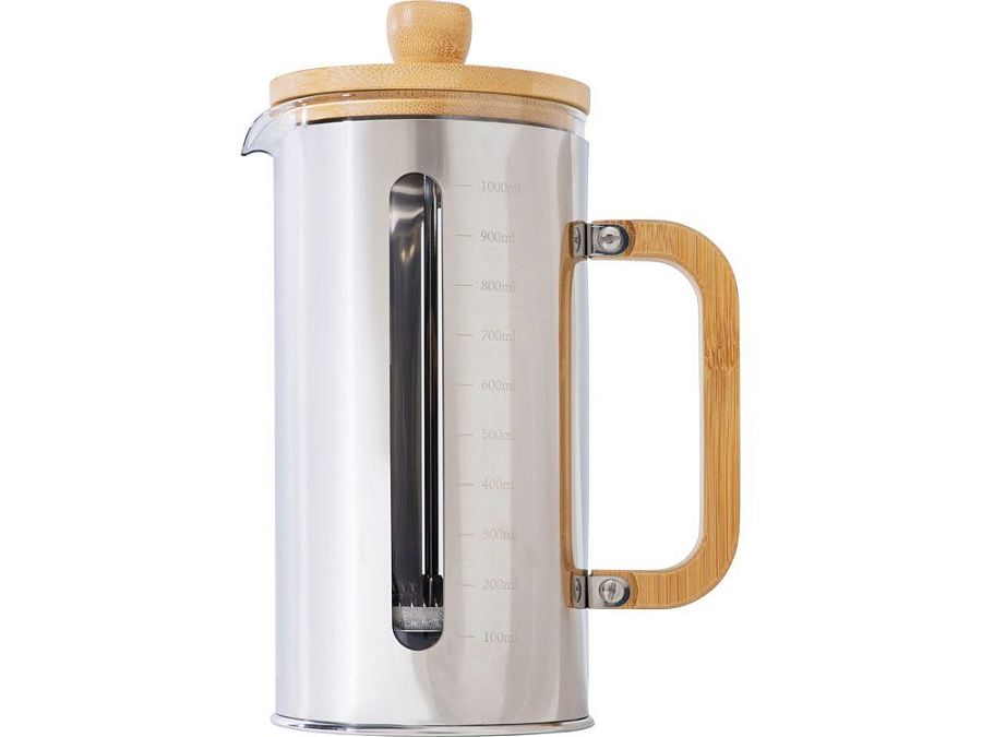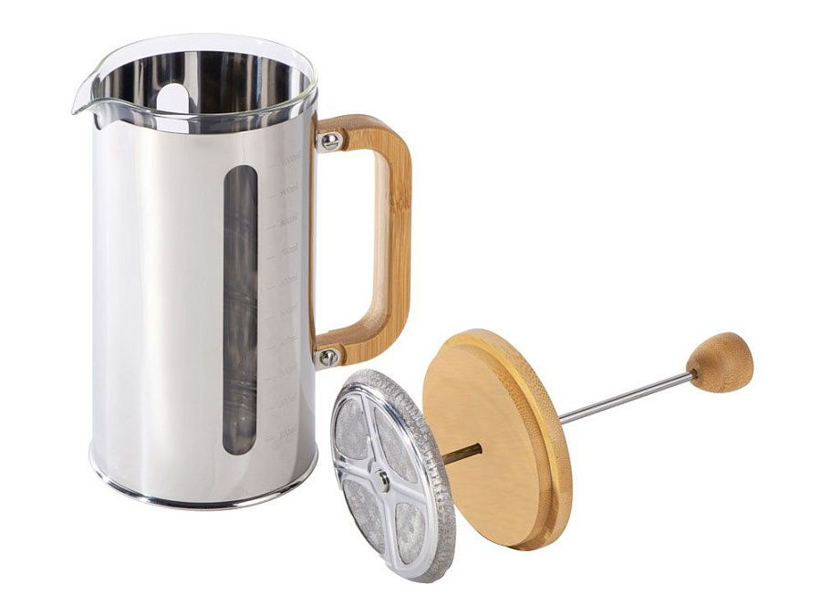 Френч-пресс выполнен из нескольких материалов, каждый из которых не только отвечает за эстетичность, но и несет функциональное значение: колба из прочного боросиликатного стекла легко моется и выдерживает температуру до 140 градусов, корпус из нержавеющей стали дополнительно защищает от механических повреждений, а бамбуковые крышка и ручка не нагреваются, даже если внутри «Coffee break» крутой кипяток.