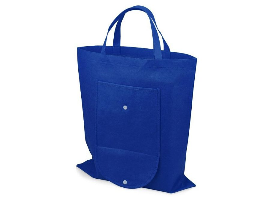 Вместительная складная сумка из нетканого материала с открытым основным отделением и карманом на пластиковой кнопке спереди. Многоразовая сумка- отличная альтернатива пластиковому пакету. Высота ручек 15 см.