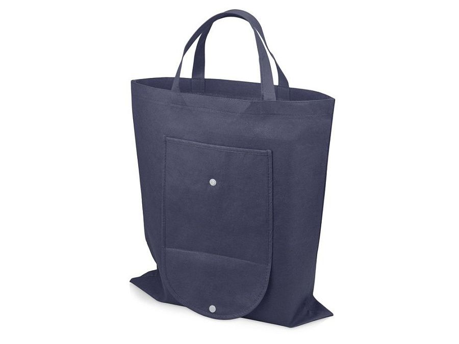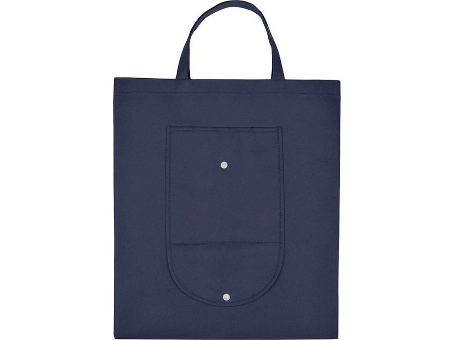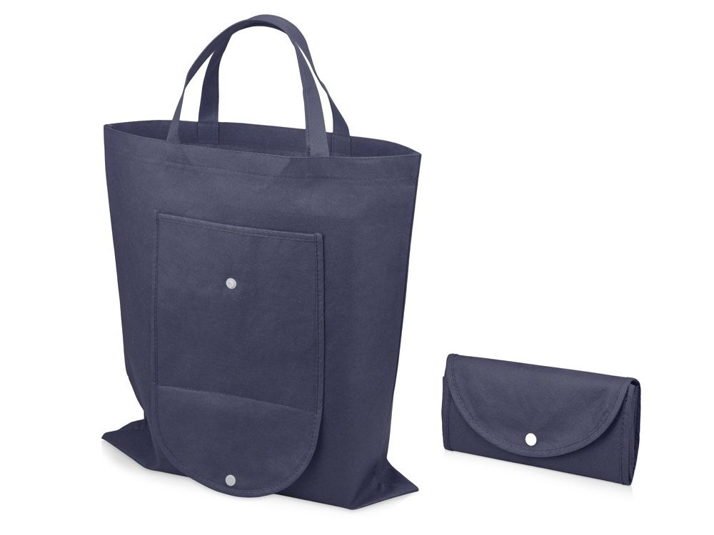 Вместительная складная сумка из нетканого материала с открытым основным отделением и карманом на пластиковой кнопке спереди. Многоразовая сумка- отличная альтернатива пластиковому пакету. Высота ручек 15 см.