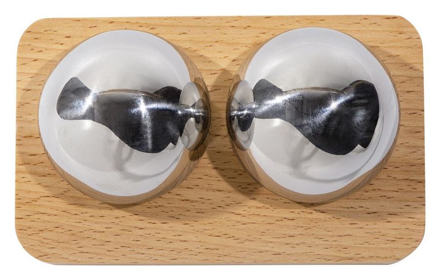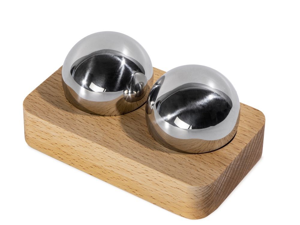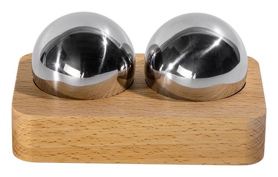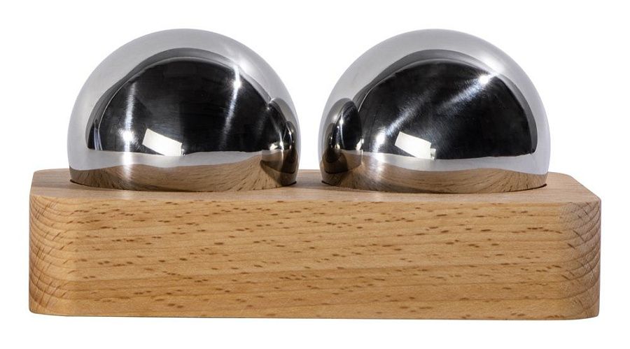Набор состоит из двух сфер, выполненных из нержавеющей стали, и подставки из дерева, которая позволяет хранить их надлежащим образом и не дает укатываться с полки. Шары изнутри наполнены специальной охлаждающей жидкостью (95% воды +5% глицерина), которая помогает быстрее понизить температуру напитка. Жидкость надежно запаяна, не является токсичной, не просачивается сквозь металл. Нержавеющая пищевая сталь 304 марки, из которой состоит шар, не изменяет вкус, цвет и запах напитков, в том числе и алкогольных, в которые помещено выполненное из этого материала изделие. Сферы для охлаждения виски не только эффектно выглядят, но и весьма полезны, быстро понижая температуру, а главное — не разбавляют напиток в процессе. Перед использованием шары нужно положить в морозильную камеру на несколько часов (от трех до шести), а затем поместить в бокал для виски. Готово! Подставка не только обрамляет основной компонент набора, «подавая» его и дополняя, но и решает важный вопрос хранения шаров, не давая им укатываться. - просты в использовании - многочисленные возможности для персонализации - материалы высокого качества, безопасные для человека - интересный формфактор Для продления жизни подставки ее можно смазывать растительным, оливковым, льняным маслом. Не замачивать в воде, не пересушивать. На время пропитки шары следует извлечь из выемок.