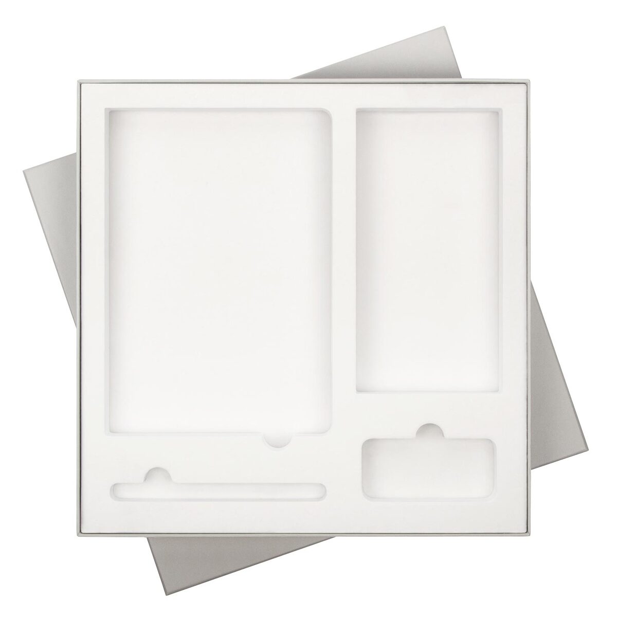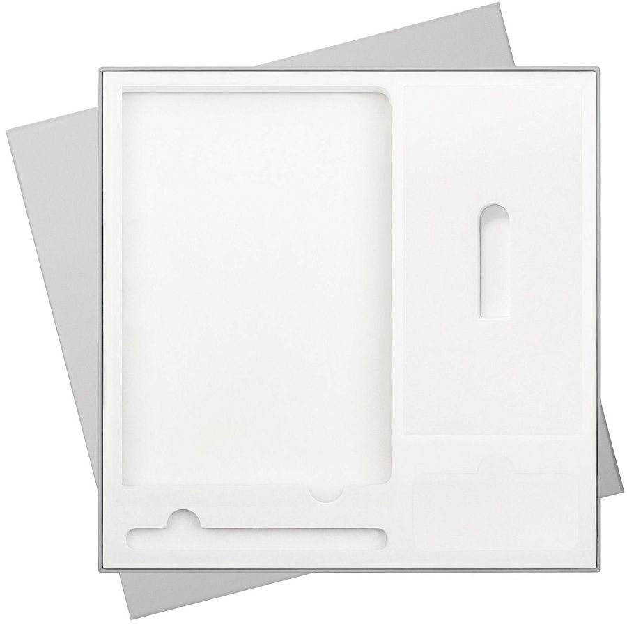 Подарочная упаковка с EVA ложементом обеспечивает расширенный выбор аксессуаров: конструкторская особенность ложемента позволяет использовать его под все виды зарядных устройств. Универсальные вырубные ячейки в точности повторяют форму аксессуаров, фиксируя их положение в коробке и обеспечивая сохранность набора. А флокированный материал ложемента, фактура которого напоминает бархат, удачно сочетается со всеми комплектующими.